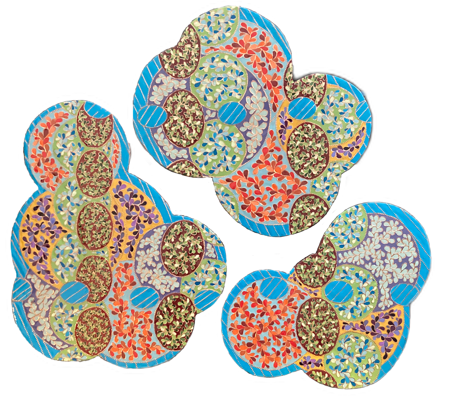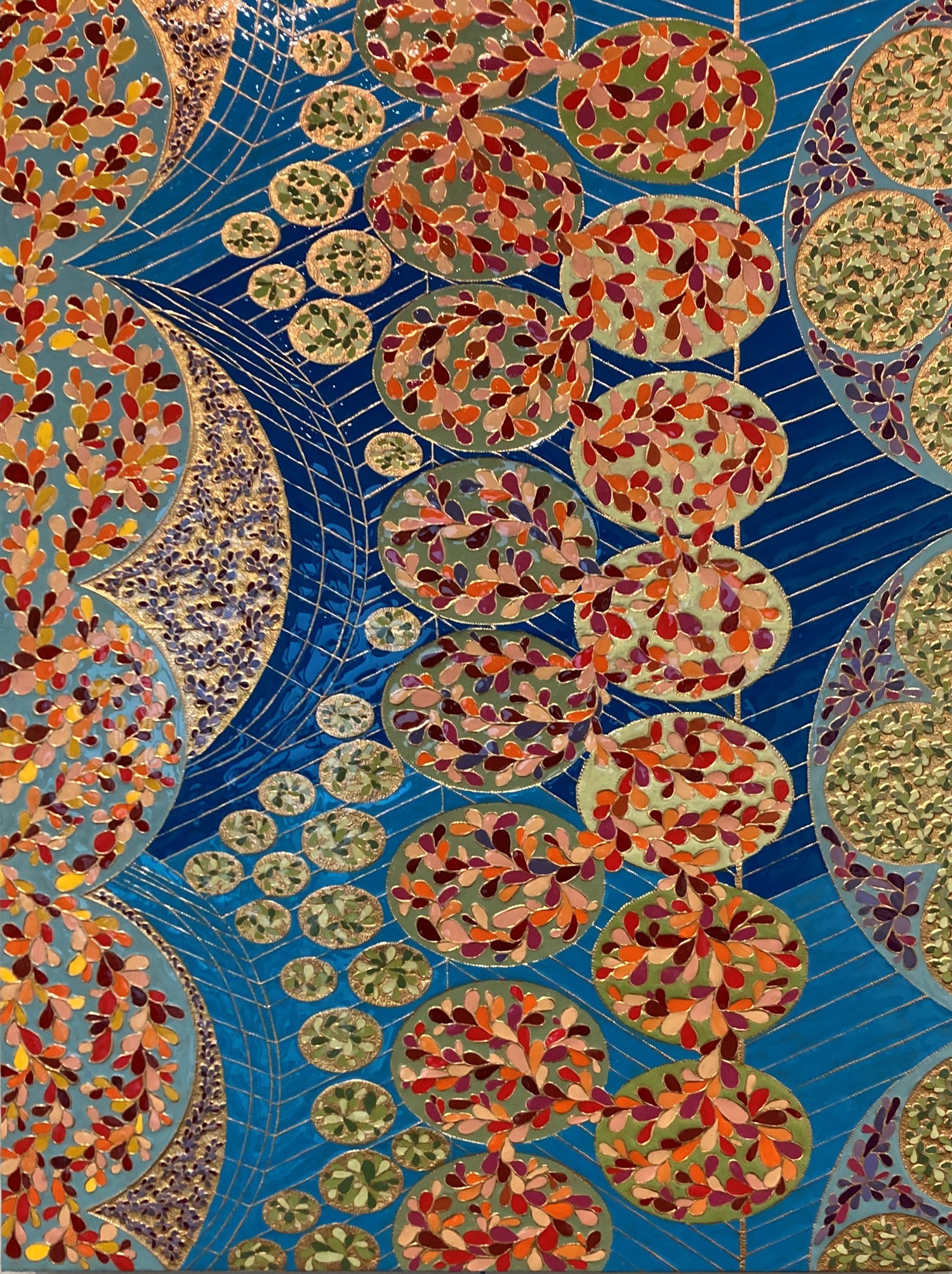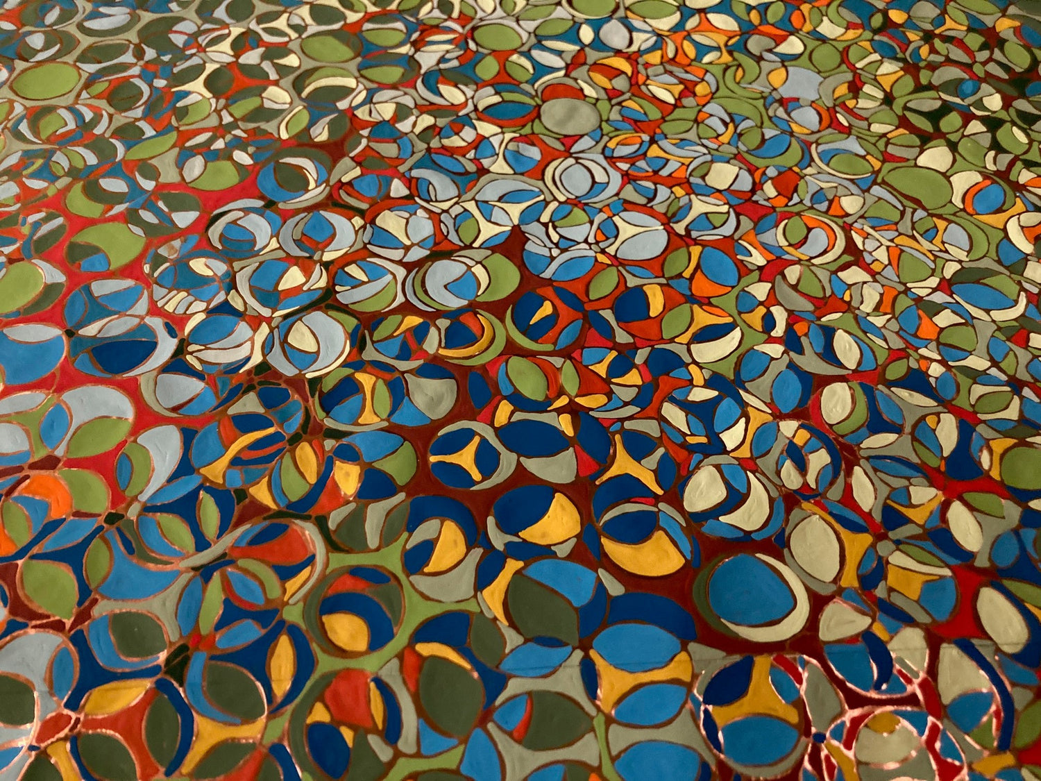 The creation of this work is a meditative study of the aesthetics of joy. Curved and circular shapes, bright colors, and repeating elements are all used as part of the composition to attempt to visually capture an emotional response.
