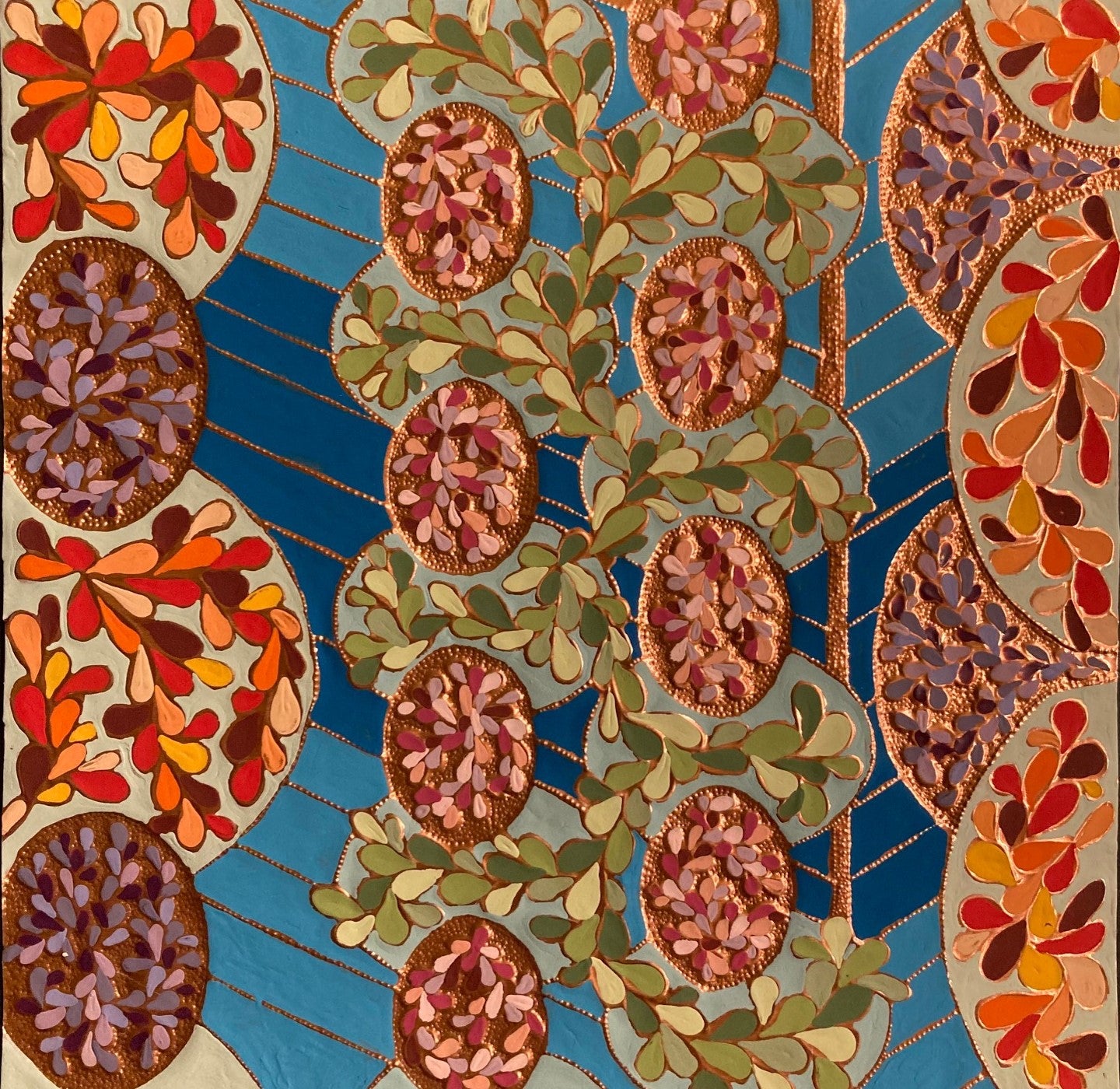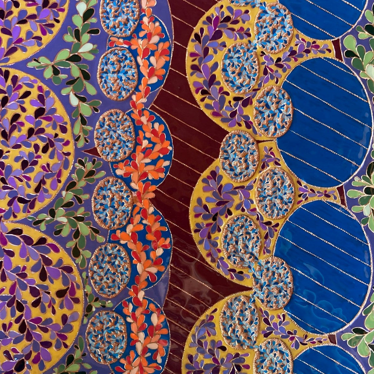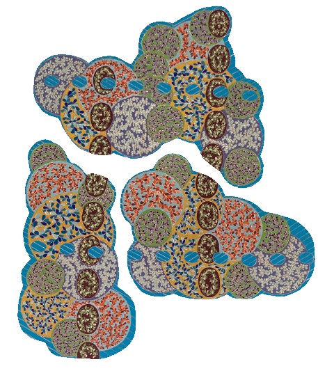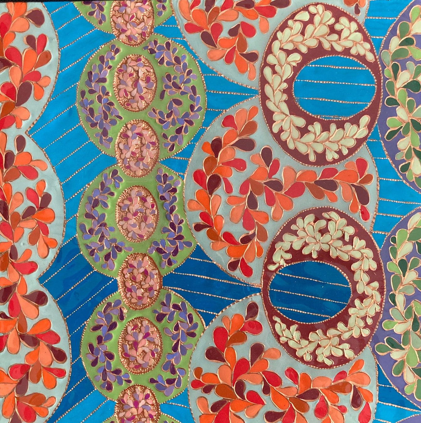 The creation of this work is a meditative study of the aesthetics of joy. Curved and circular shapes, bright colors, and repeating elements are all used as part of the composition to attempt to visually capture an emotional response.